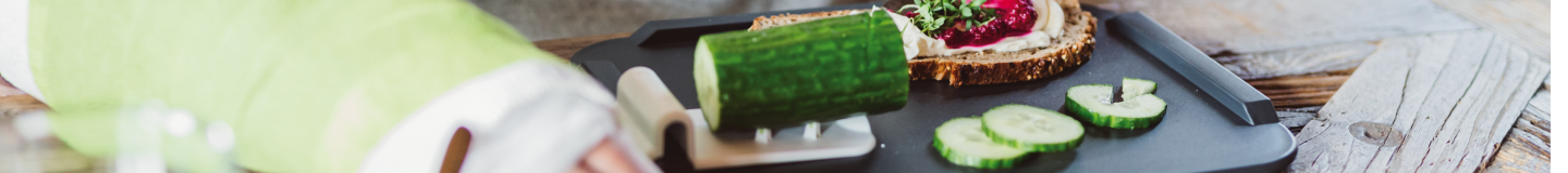 Problem polega na tym, że standardowa kuchnia jest zaprojektowana dla dwóch rąk. Deska kuchenna przesuwa się przy jednoręcznym krojeniu. Chleb obraca się przy smarowaniu. Jabłko zeslizguje przy obieraniu. Nie chodzi o siłę sprawnej ręki — chodzi o brak stabilizacji, którą dotąd zapewniała ta druga.